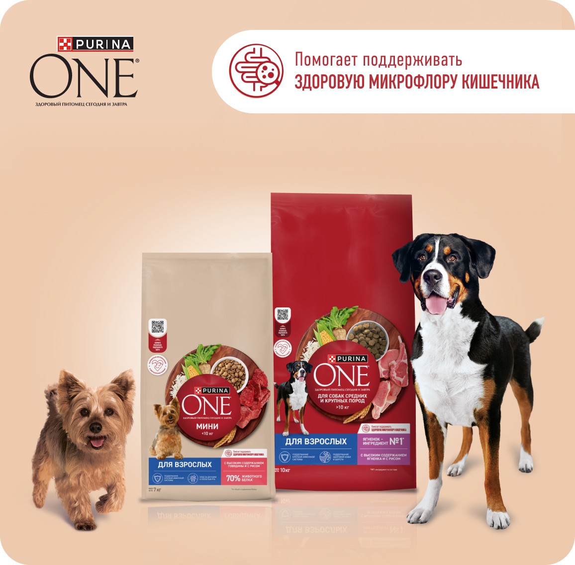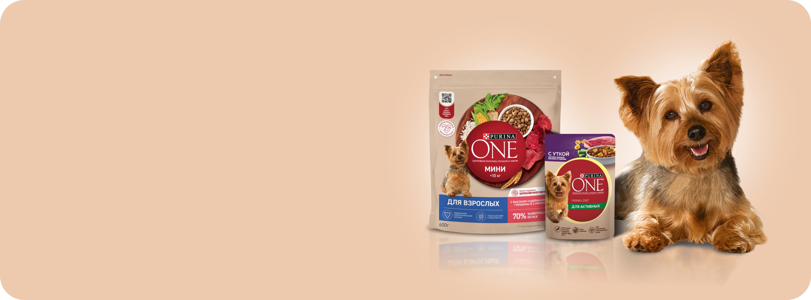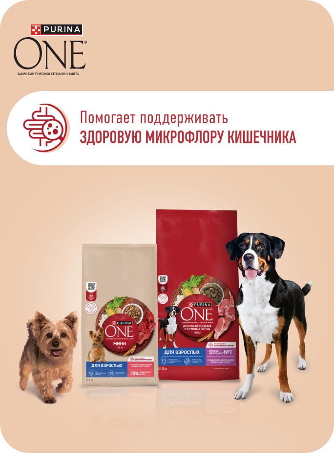 Кормите правильно вместе с брендом Purina ONE®, дополнив сухой рацион влажными кормами, созданными с учетом потребностей вашей собаки.