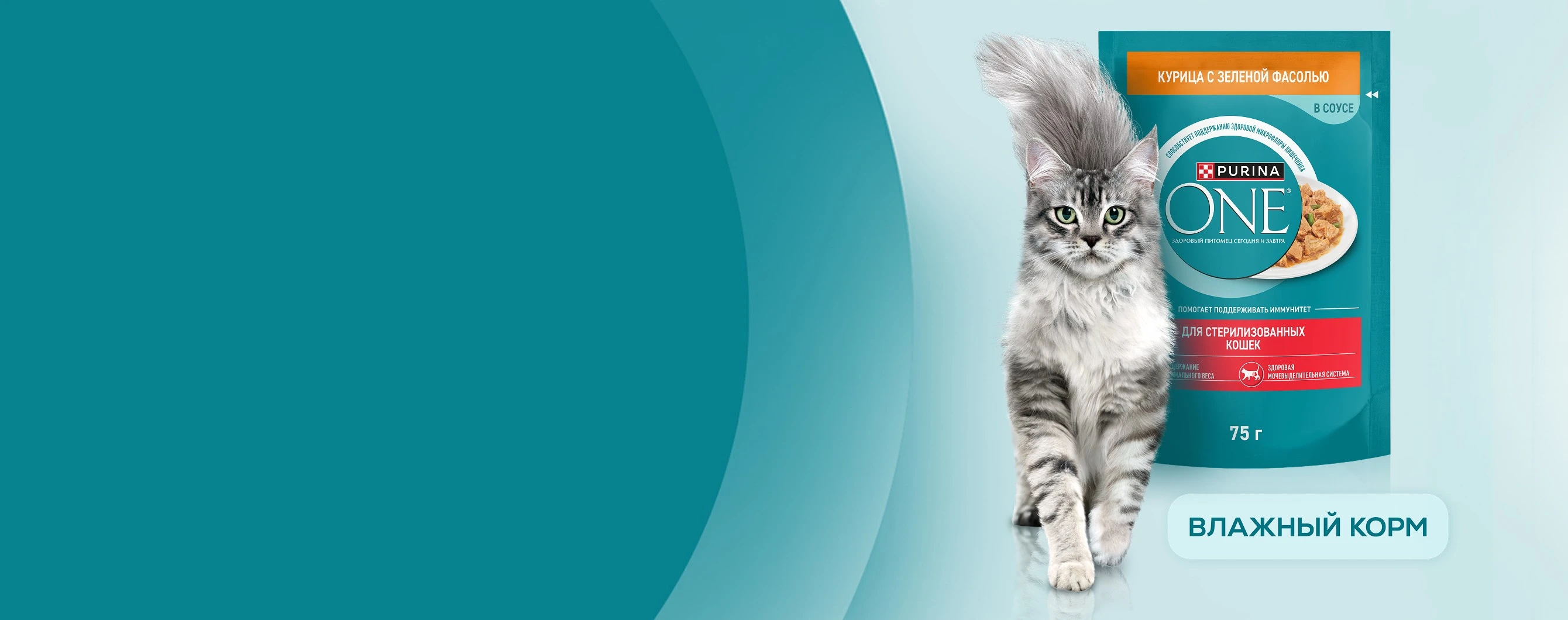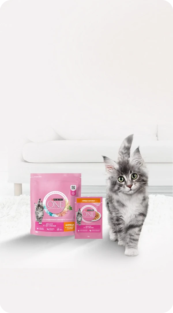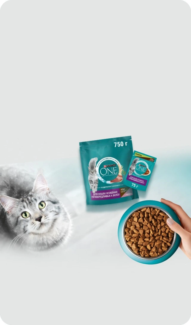 Кормите правильно вместе с брендом Purina ONE®, дополнив сухой рацион влажными кормами, созданными с учетом потребностей вашей кошки.