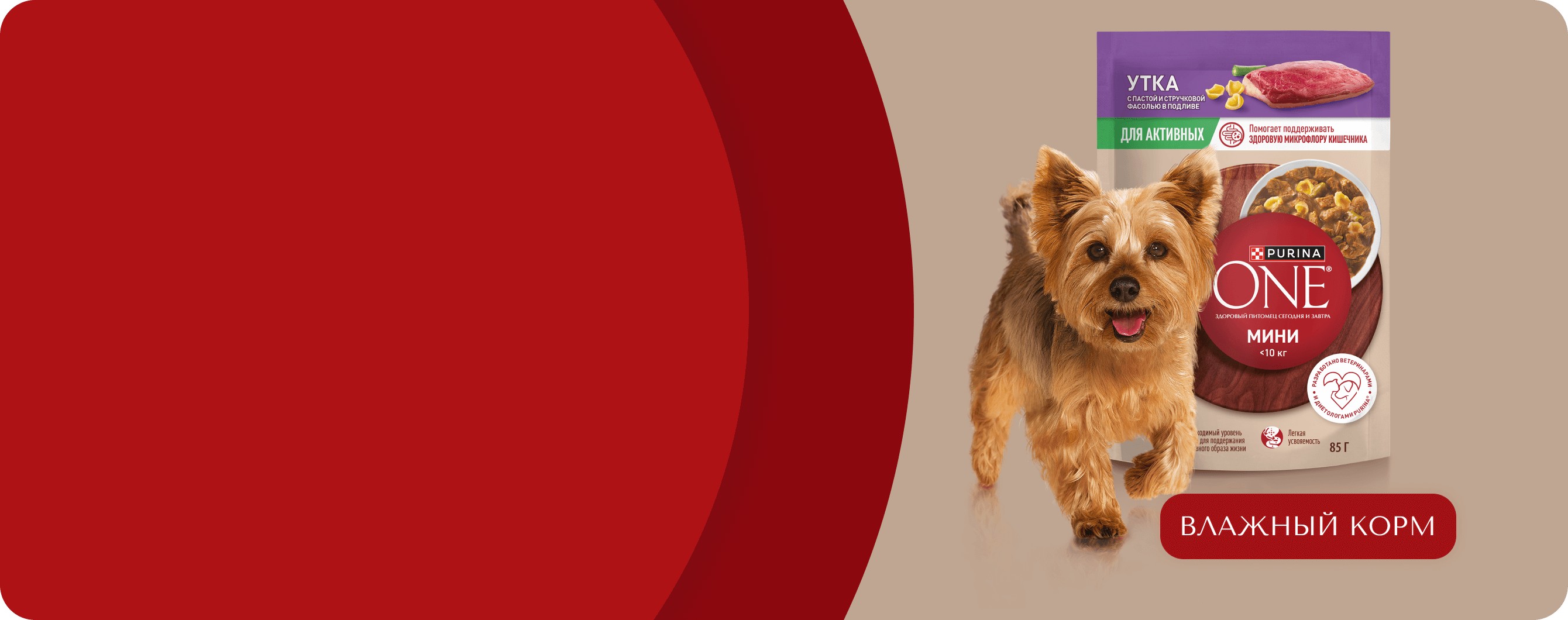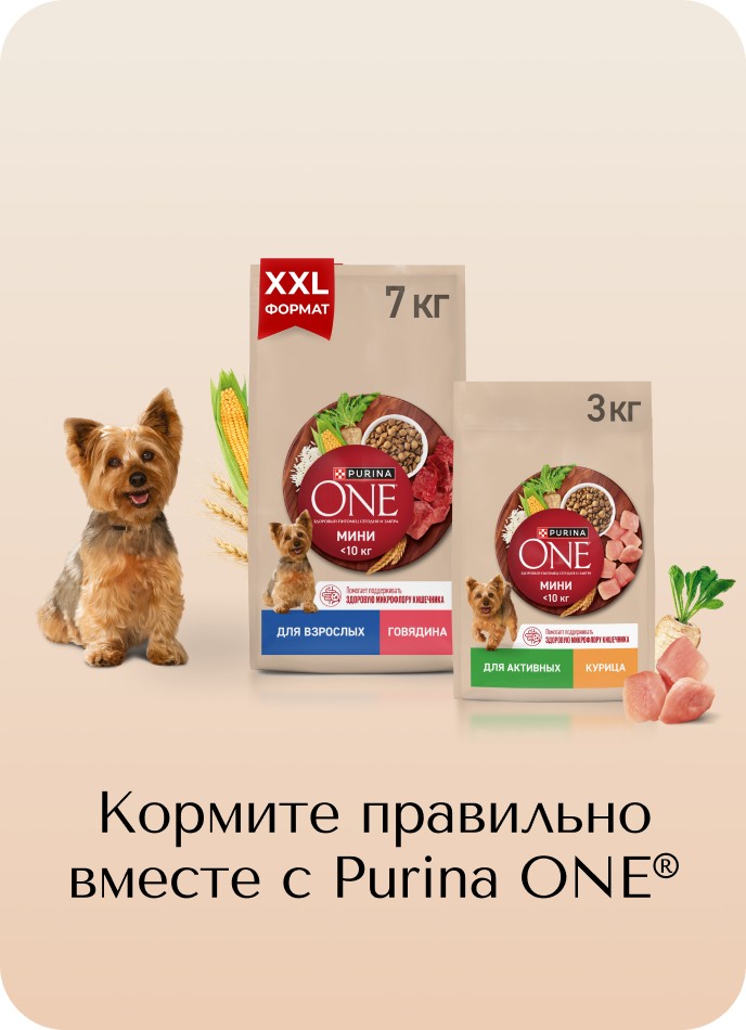 Кормите правильно вместе с брендом Purina ONE®, дополнив сухой рацион влажными кормами, созданными с учетом потребностей вашей собаки.